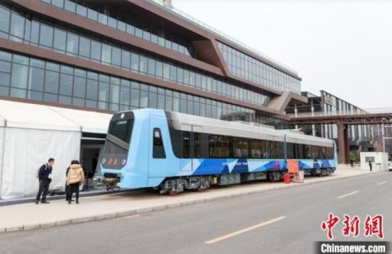 軌道行業(yè)創(chuàng)新產(chǎn)品在京展示 氫燃料鉸接輕軌車亮相