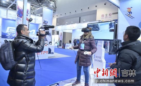 來(lái)自阿塞拜疆的記者,戴上VR頭盔,站在模擬滑雪機(jī)上,體驗(yàn)了虛擬滑雪的樂(lè)趣!澳M滑雪機(jī)對(duì)于我這種不會(huì)滑雪的人來(lái)說(shuō)很友好,不用擔(dān)心摔傷了。”阿塞拜疆電視記者嘉帆歌說(shuō)。