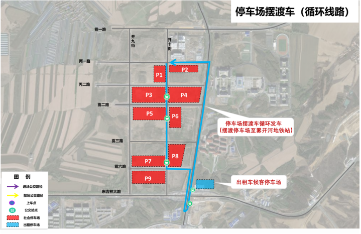 2號(hào)門(mén):乘坐接駁3號(hào)線公交車(chē),返回地鐵霧開(kāi)河大街站C口;換乘停車(chē)場(chǎng)擺渡車(chē),返回臨時(shí)停車(chē)場(chǎng)。(如下二圖)