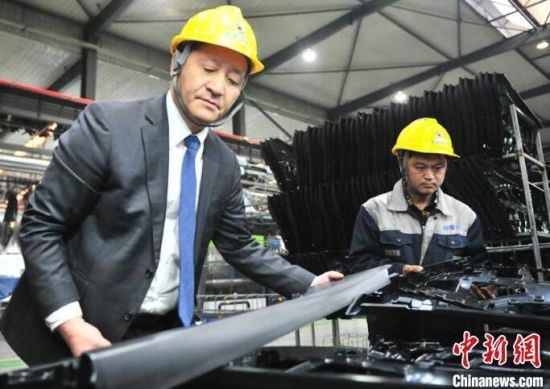 汽車門護(hù)板整齊地排列在傳送帶上,仿佛巨龍身上的鱗片。陳建林從中抽出一片,拿到燈下來回翻看,一番挑剔過后終于露出滿意的笑容。