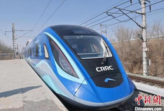 3月21日,全球首列氫能源市域列車在長(zhǎng)春進(jìn)行時(shí)速160公里滿載運(yùn)行試驗(yàn)。中新社記者 張瑤 攝