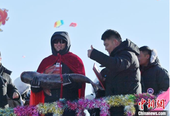 12月28日,查干湖第二十三屆冰雪漁獵文化旅游節(jié)開幕,在“頭魚”拍賣儀式上,“頭魚”拍出1199999元。 張瑤 攝