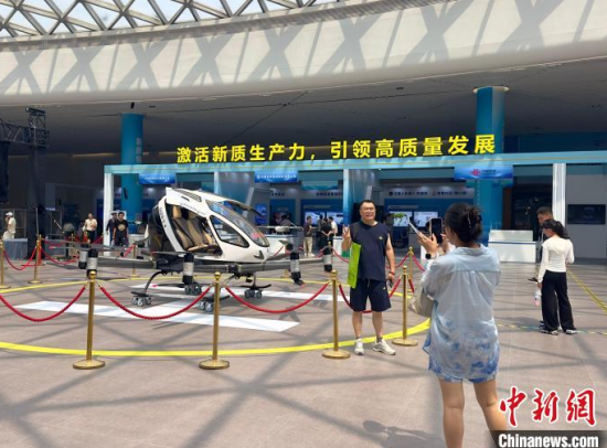 觀眾與無人駕駛載人航空器合影。 郭佳 攝