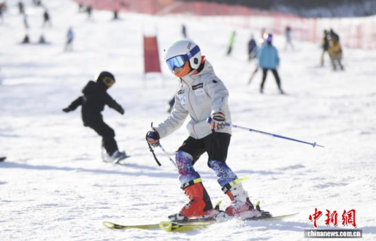 吉林霧凇冰雪節(jié)開幕當天,游客在中旅松花湖滑雪場暢滑!∈橛 攝