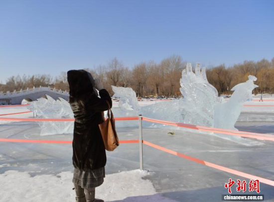 吉林長(zhǎng)春:“龍鳳呈祥”巨型冰雕吸引市民