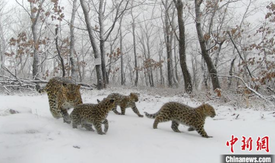 中新網(wǎng)長春3月29日電(記者 郭佳)記者29日從東北虎豹國家公園管理局獲悉,近期該局東寧市管護(hù)中心的工作人員在整理監(jiān)測數(shù)據(jù)時(shí),驚喜發(fā)現(xiàn)四只東北豹同框的視頻畫面。