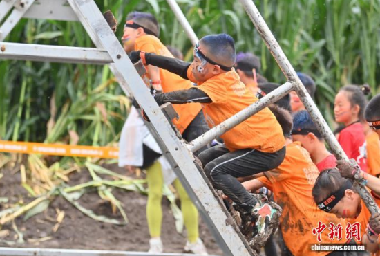 7月25日,2025斯巴達(dá)勇士?jī)和愰L(zhǎng)春站在卡倫湖力旺實(shí)驗(yàn)學(xué)校開賽。當(dāng)天大雨傾盆,參賽的小選手們熱情不減,紛紛化身“小勇士”,在泥濘的賽道上勇闖障礙、攀爬坡道。圖為參加斯巴達(dá)勇士?jī)和惖倪x手在比賽中。中新社記者 張瑤 攝
