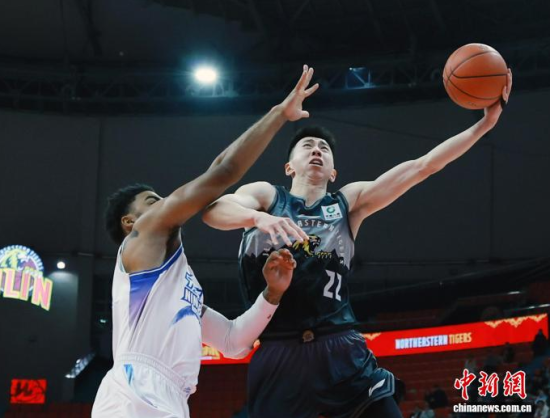 吉林隊(duì)22號(hào)賈昊(黑衣)正在上籃!墙饾 攝