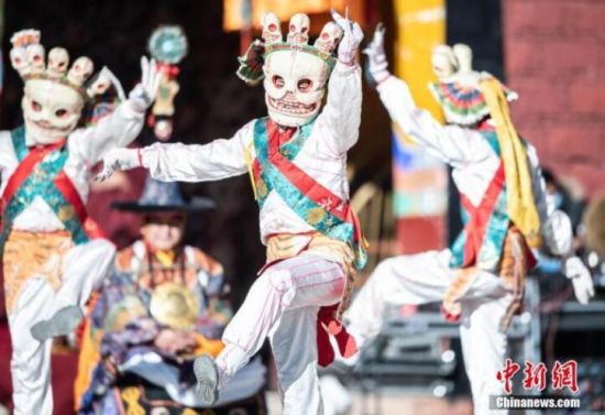 中新社拉薩2月19日電 (記者 趙朗)19日是藏歷十二月二十九日,西藏楚布寺舉行“羌姆”表演迎藏歷新年。這一天的重要程度相當(dāng)于農(nóng)歷的除夕。