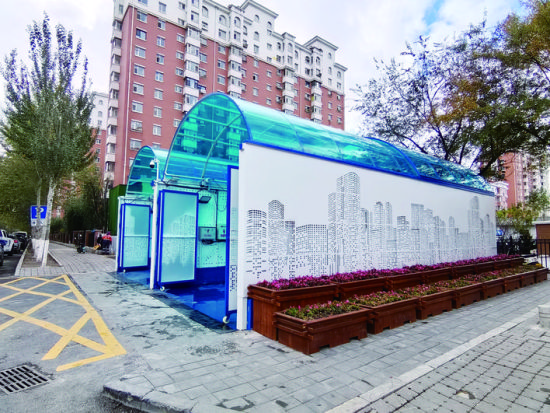 “華順街與華遠路交會處共有3個環(huán)衛(wèi)設(shè)施,包括公廁、環(huán)衛(wèi)工人休息室和生活垃圾轉(zhuǎn)運站。原有環(huán)衛(wèi)設(shè)施較為老舊且破損嚴重,不僅難以滿足環(huán)衛(wèi)工作日常需求,整體老舊形象還影響周邊市容環(huán)境!表樦详P(guān)區(qū)城市管理行政執(zhí)法局環(huán)衛(wèi)科科長董建輝手指的方向望去,改造后的環(huán)衛(wèi)設(shè)施煥然一新。
