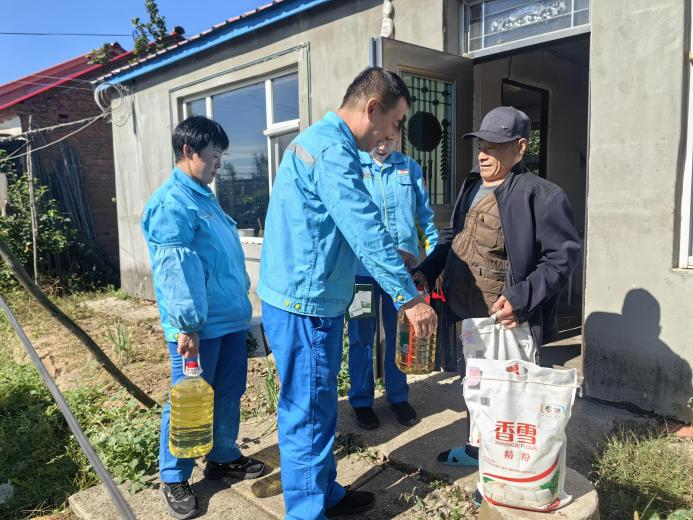 通化分公司百里花加油站志愿者為孤寡老人送生活物資。孫晶/供圖