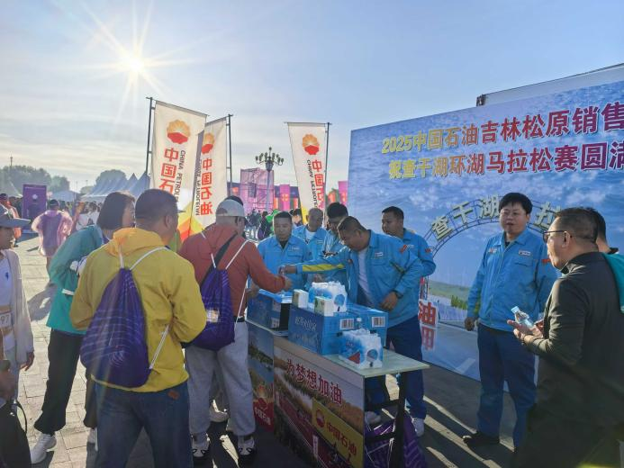 松原分公司設(shè)立能源補(bǔ)給站支持查干湖馬拉松。高銘辰/供圖