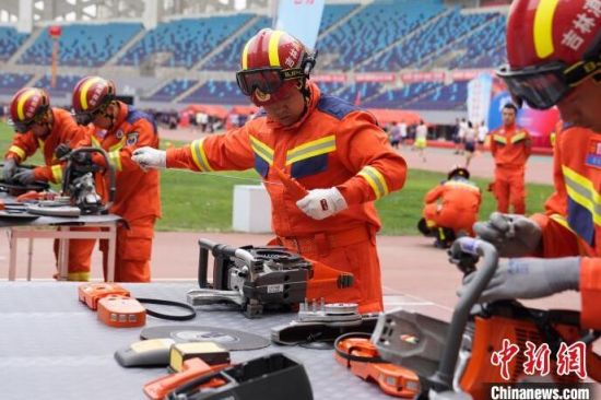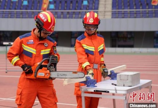 消防指戰(zhàn)員在進(jìn)行無齒鋸組裝!埇 攝