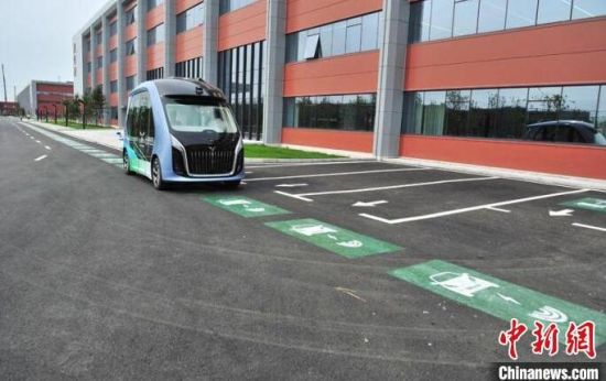 一輛新能源電動(dòng)車(chē)駛過(guò)高功率動(dòng)態(tài)無(wú)線(xiàn)充電道路系統(tǒng)的泊車(chē)位。