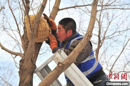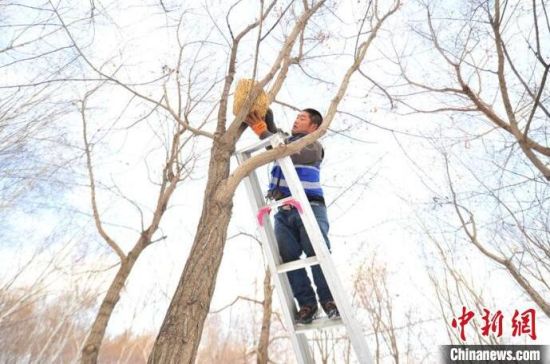 長(zhǎng)春一公園連續(xù)三年設(shè)置鳥巢助野生鳥過冬