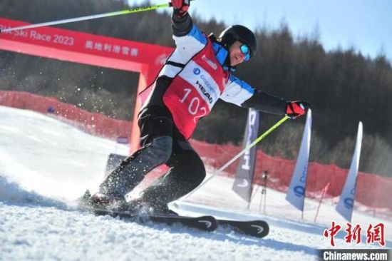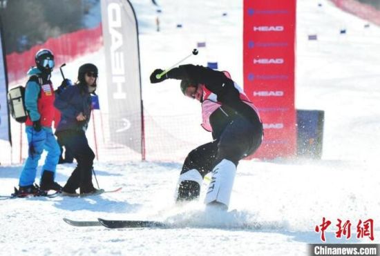中外滑雪選手在吉林通化參賽炫技