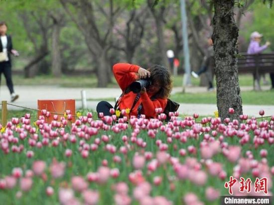 5月6日,吉林長(zhǎng)春,民眾正在公園內(nèi)打卡拍照。初夏時(shí)節(jié),長(zhǎng)春公園中的50萬余株郁金香迎來盛花期,吸引大量民眾前來賞花。(完)