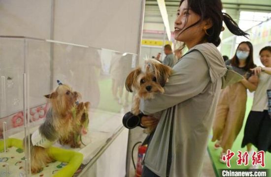 6月28日,吉林長春,逛展市民看鸚鵡。當日,2024東北亞(長春)國際寵物展在長春開幕,百余個知名品牌和200余名寵物繁育者攜2000余個寵物活體齊聚,吸引市民攜帶愛寵逛展。 (中新社記者 張瑤 攝)