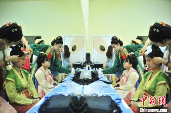 7月9日,吉林四平,2024年全國臺聯(lián)第二十一屆臺胞青年千人夏令營吉林分營的30余位臺胞青年參加傳統(tǒng)文化講座,學(xué)習(xí)漢服禮儀、漢服種類劃分等知識,并第一次穿上漢服進行體驗,感受傳統(tǒng)文化之美。圖為臺胞青年在進行漢服妝造。