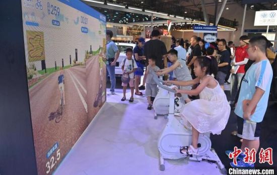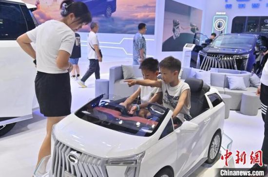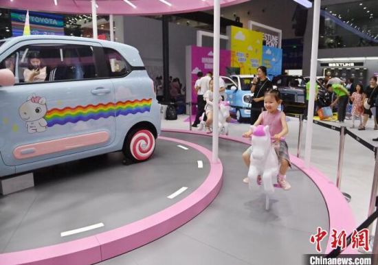7月13日,在第21屆長春國際汽車博覽會(huì)上,小朋友在淘氣堡玩耍。本屆長春汽博會(huì)有全球124個(gè)品牌的展車亮相,現(xiàn)場設(shè)置了許多游戲體驗(yàn)項(xiàng)目,吸引小朋友們參與。 (中新社記者 張瑤/攝)