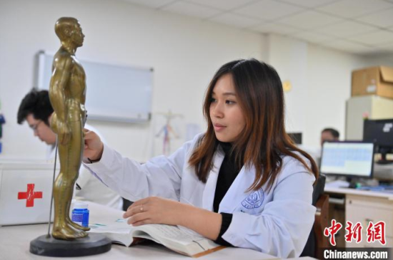 10月23日,吉林長(zhǎng)春,林玉花在練習(xí)針灸。來自泰國(guó)的林玉花是長(zhǎng)春中醫(yī)藥大學(xué)中醫(yī)內(nèi)科學(xué)的研究生,經(jīng)過一年多的深造,她越發(fā)愛上博大精深的中醫(yī)和中國(guó)傳統(tǒng)文化。林玉花說,她希望把在中國(guó)學(xué)到的中醫(yī)技藝帶回家,將來開一家中醫(yī)館。中新社記者 張瑤 攝
