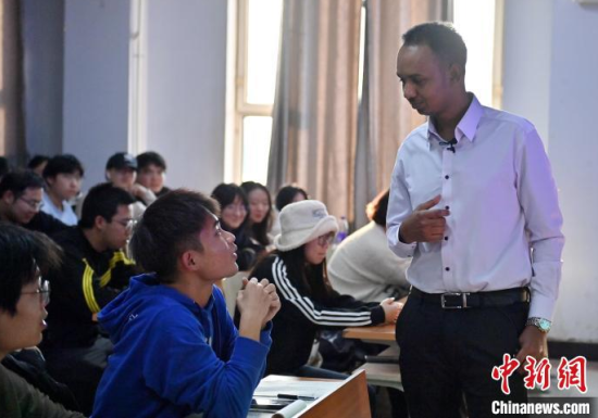 11月6日,在長春師范大學(xué),馬宋在上課。1993年出生的馬宋來自蘇丹,畢業(yè)于中國地質(zhì)大學(xué)計(jì)算機(jī)技術(shù)與科學(xué)專業(yè),畢業(yè)后在福建一家企業(yè)做IT工程師。喜歡教學(xué)的馬宋,去年來到長春師范大學(xué)“跨界”成為一名計(jì)算機(jī)專業(yè)的老師。馬宋說,他和中國的年輕人相處得非常愉快,未來他想扎根在這里,為學(xué)生們傳道授業(yè)解惑。中新社記者 張瑤 攝