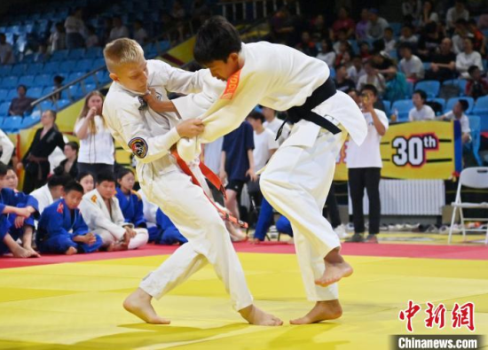 6月15日,“青春共武·中俄青少年武術(shù)交流活動(dòng)” 在長(zhǎng)春市體育館拉開帷幕。賽場(chǎng)上,來(lái)自俄羅斯柔術(shù)協(xié)會(huì)的140 名成員與長(zhǎng)春市業(yè)余體育運(yùn)動(dòng)學(xué)校的 100 名學(xué)生輪番登臺(tái),展開激烈競(jìng)技。圖為俄羅斯青少年進(jìn)行柔術(shù)比賽。中新社記者 張瑤 攝