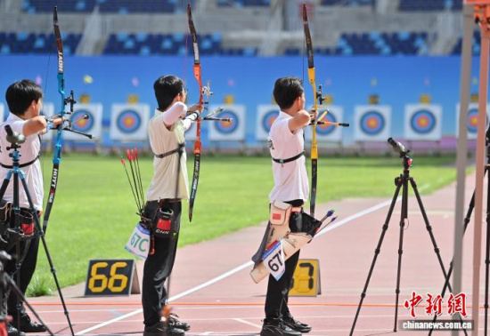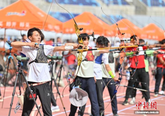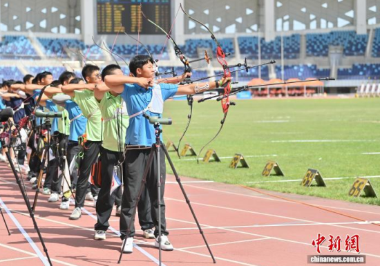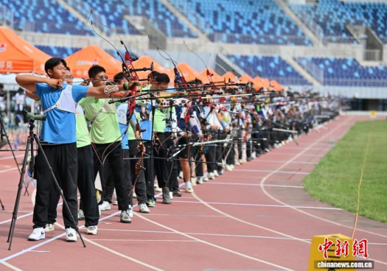 8月21日,吉林長春,運動員參加比賽。 當日,2025年全國射箭U16、U18錦標賽在長春開賽,中國各地96支射箭隊的721名運動員張弓搭箭,一較高下。  中新社記者 張瑤 攝