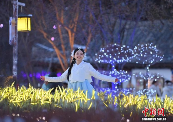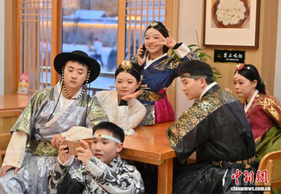 12月2日,在吉林省延邊州延吉市中國(guó)朝鮮族民俗園內(nèi),游客身著朝鮮族服飾拍照。作為中國(guó)唯一的朝鮮族自治州和最大朝鮮族聚居地,延邊近年旅游熱度持續(xù)攀升,朝鮮族服飾旅拍已成為當(dāng)?shù)刈钍軞g迎的旅游體驗(yàn)之一。盡管遭遇降溫降雪天氣,游客熱情依然不減,在銀裝素裹的園中定格獨(dú)具民族風(fēng)情的畫面。中新社記者 張瑤 攝