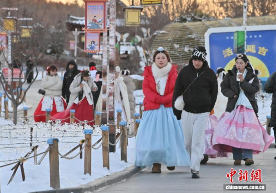 延吉民俗園旅拍火熱 冰雪難擋游客熱情