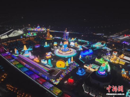 12月19日晚,長春冰雪新天地開門迎客。2025-2026雪季的長春冰雪新天地占地面積156萬平方米,開發(fā)了76萬平方米的冰雪游樂空間,總用冰用雪量達85萬立方米,冰雪雕塑200余座。隨著夜幕降臨,冰雕景觀亮燈,整個園區(qū)仿佛一座如夢如幻的冰雪王國。中新社記者 張瑤 攝