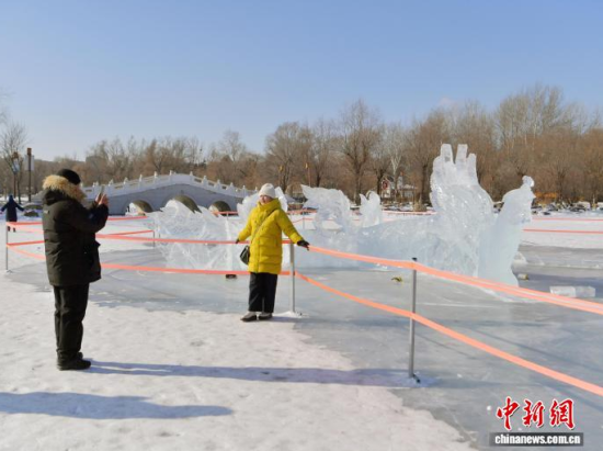 1月20日,在長(zhǎng)春市南湖公園,“龍鳳呈祥”冰雕吸引市民駐足觀看 。該冰雕主體為一條長(zhǎng)達(dá)45米的冰龍與一只展翅約20米的冰鳳凰組成,兩者遙相呼應(yīng),蜿蜒盤(pán)旋在冰面上。冰雕充分利用了北方冬季的自然條件,在陽(yáng)光下晶瑩剔透,成為公園內(nèi)一道醒目的冬日景觀。中新社記者 張瑤 攝