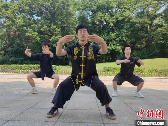近日,康梓楗(中)和健身“搭子”用中式健身方法鍛煉。 石洪宇 攝