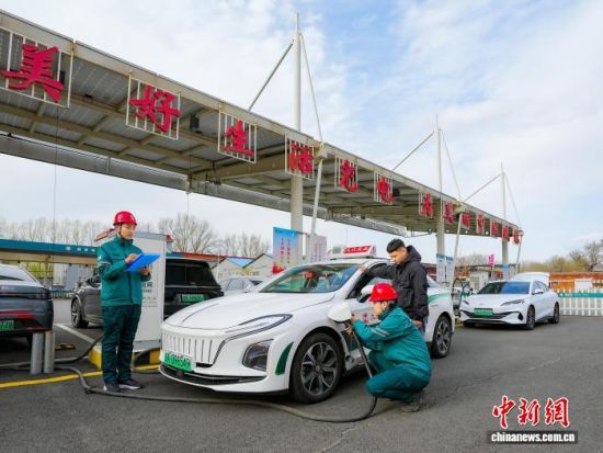 電力員工服務(wù)新能源汽車車主充電。(國網(wǎng)吉林省電力有限公司供圖)